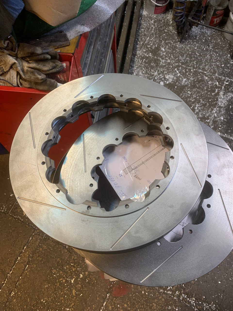 Demontáž kotoučů, demontáž středového dílu, montáž nových rotorů, všechny nové upevňovací prvky, vyvážení, zpětná montáž na auto, výměna destiček kolem dokola, zkušební jízda.