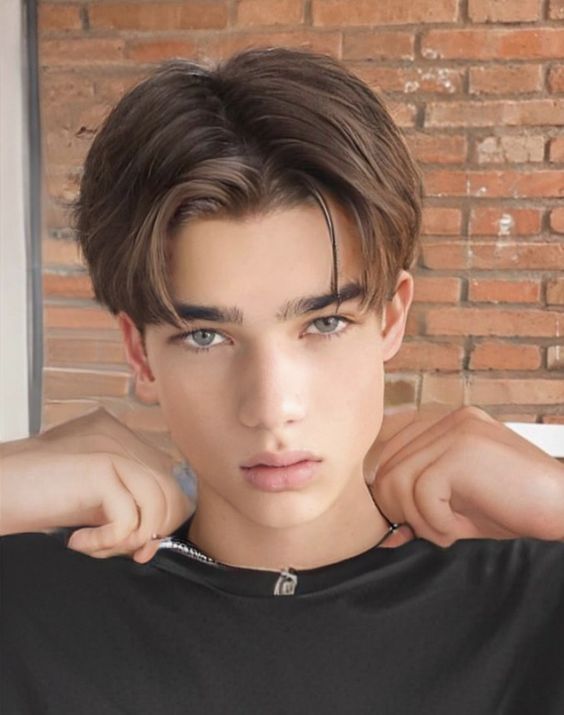 Módní varianta pro chlapce s rovnými vlasy, které zvýrazňují rysy obličeje a vypadají jinak v závislosti na tom, jak jsou stylizované.